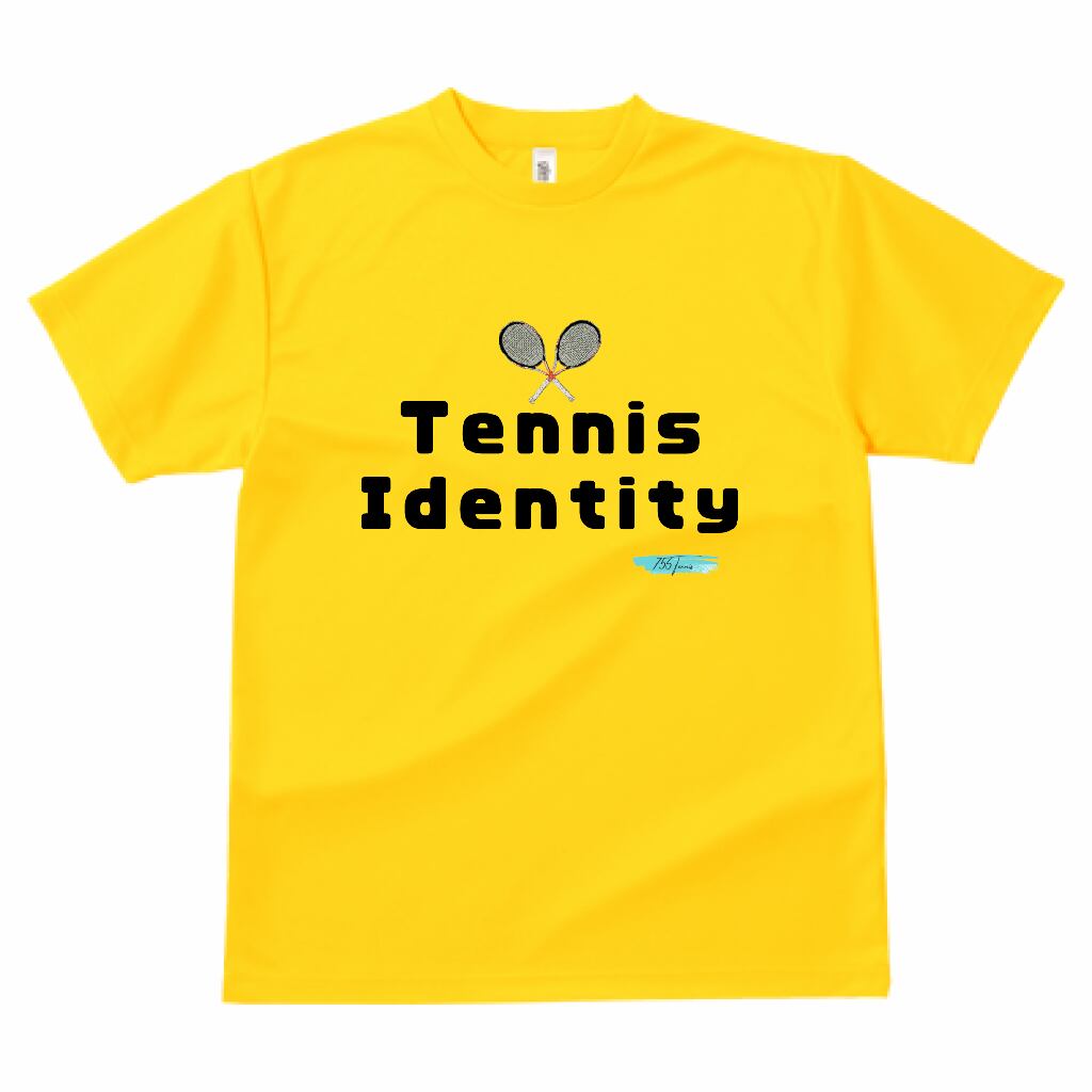 『Tennis Identity』というロゴがメインであり、その上部にラケットイラストが2本重ねてプリントされています。